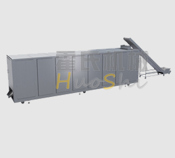 物料由加料器均勻地鋪在網帶上,網帶采用12-60目不銹鋼絲網。由傳動裝置拖動在干燥機內移動。干燥機由若干單元組成,每一單元熱風獨立循環,部分尾氣由專門排濕風機排出,廢氣由調節閥控制,熱氣由下往上或由上往下穿過鋪在網帶上的物料,加熱干燥并帶走水分。網帶緩慢移動,運行速度可根據物料溫度自由調節,干燥后的成品連續落入收料器中。上下循環單元根據用戶需要可靈活配備,單元數量可根據需要選取。