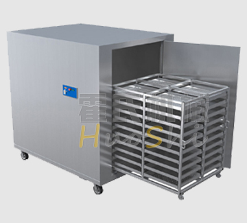 烘干機采用的純凈熱風烘干,熱風溫度可調可控,在熱風進入烘干機后,由箱內高溫高濕軸流風機在箱內穿透物料并循環,循環風向由儀表自動控制正反轉,時間可隨意設定,一般30分鐘以上轉換風向一次,由烘干機中部百葉窗式排潮口自然排潮。這樣各層物料能均勻快速烘干。